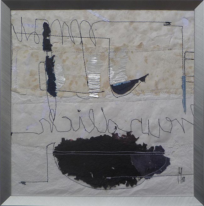 Collage, handgeschöpftes Papier, gefärbt, genäht
