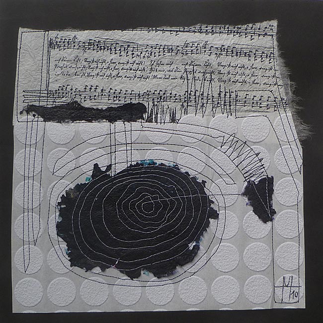 Collage, handgeschöpftes Papier, gefärbt, genäht