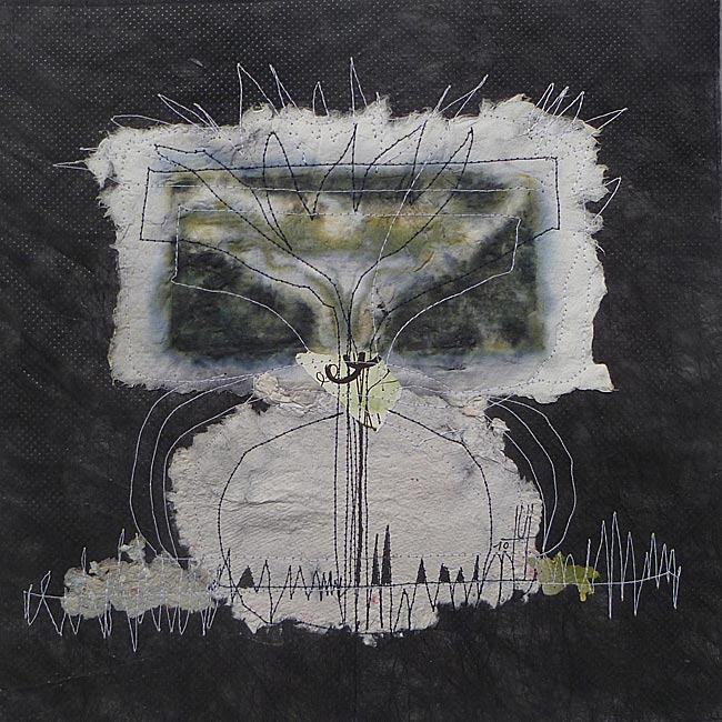 Collage, handgeschöpftes Papier, gefärbt, genäht