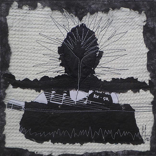 Collage, handgeschöpftes Papier, gefärbt, genäht