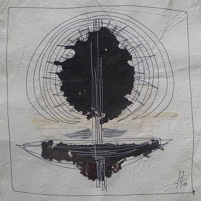 Collage, handgeschöpftes Papier, gefärbt, genäht