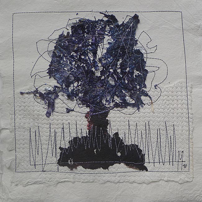 Collage, handgeschöpftes Papier, gefärbt, genäht