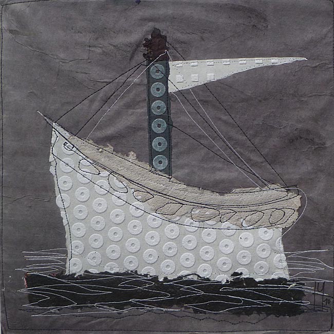 Collage, handgeschöpftes Papier, gefärbt, genäht