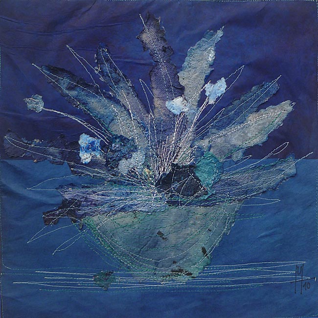 Collage, handgeschöpftes Papier, gefärbt, genäht