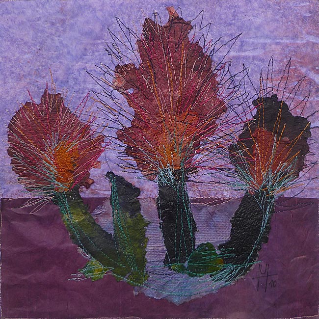 Collage, handgeschöpftes Papier, gefärbt, genäht