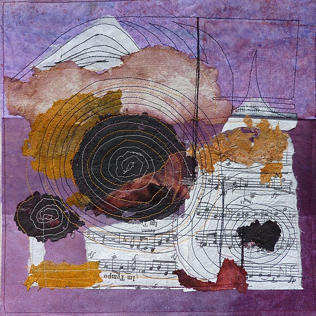 Collage, handgeschöpftes Papier, gefärbt, genäht
