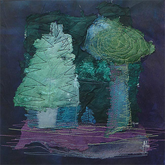 Collage, handgeschöpftes Papier, gefärbt, genäht