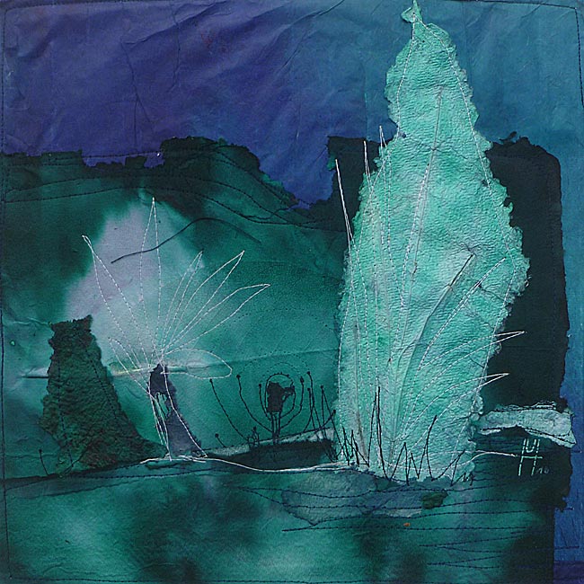 Collage, handgeschöpftes Papier, gefärbt, genäht