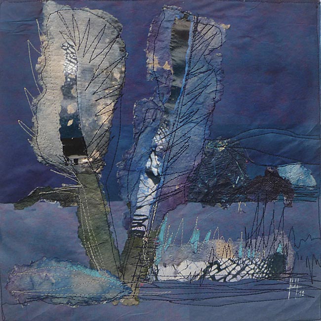Collage, handgeschöpftes Papier, gefärbt, genäht