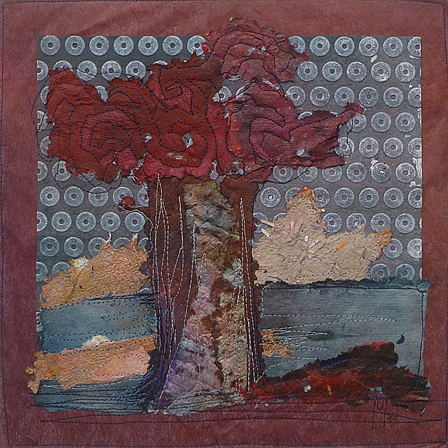 Collage, handgeschöpftes Papier, gefärbt, genäht