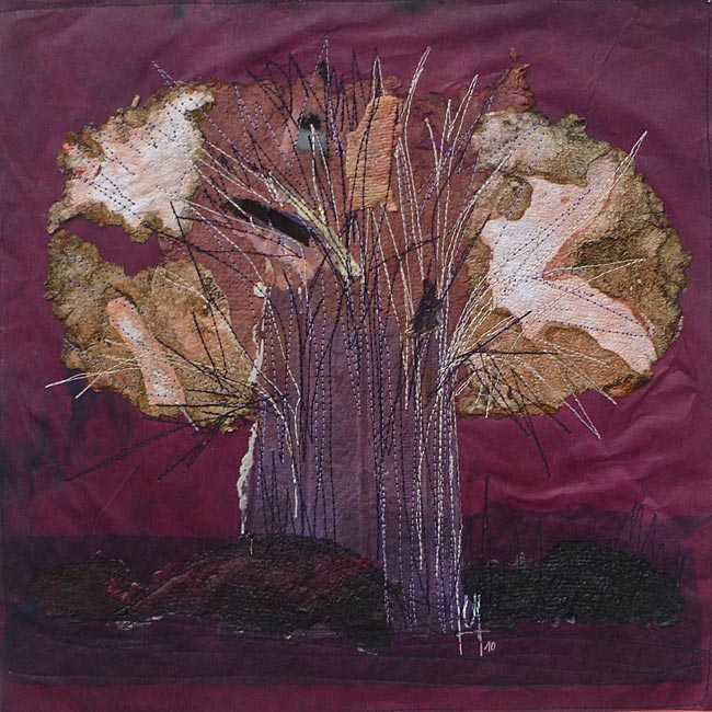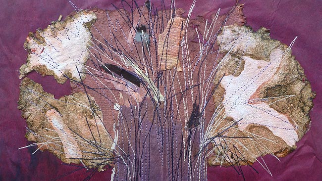 Collage, handgeschöpftes Papier, gefärbt, genäht