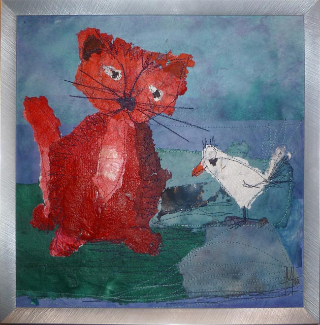 Collage, handgeschöpftes Papier, gefärbt, genäht