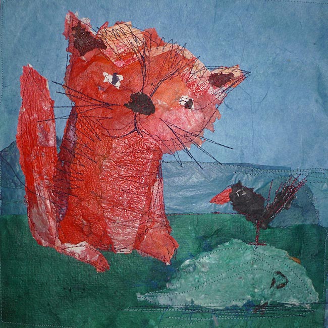 Collage, handgeschöpftes Papier, gefärbt, genäht