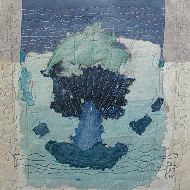 Collage, handgeschöpftes Papier, gefärbt, genäht
