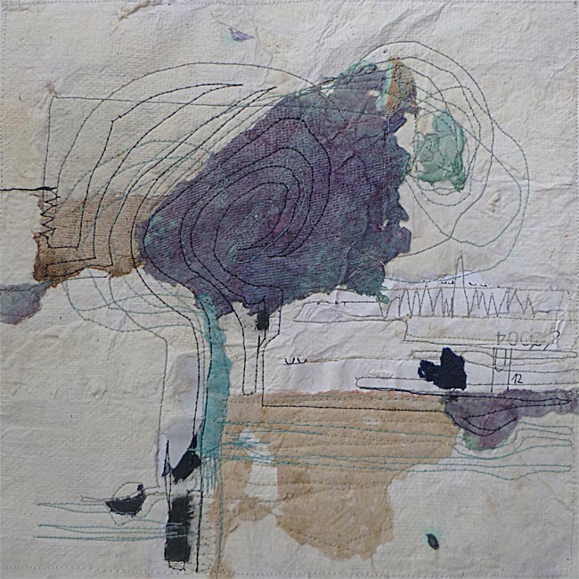 Collage, handgeschöpftes Papier, gefärbt, genäht