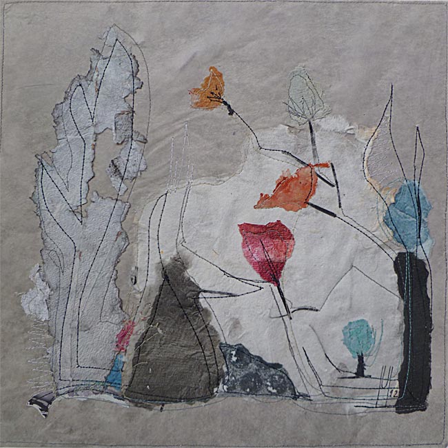 Collage, handgeschöpftes Papier, gefärbt, genäht