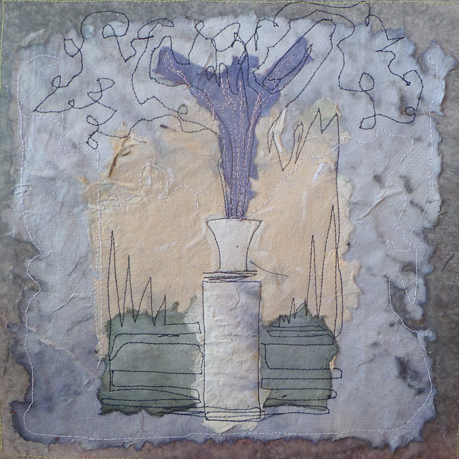 Collage, handgeschöpftes Papier, gefärbt, genäht