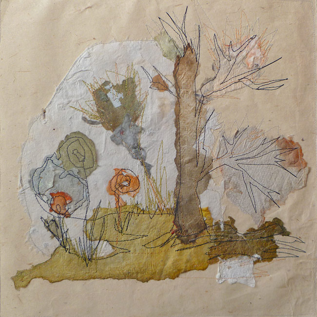 Collage, handgeschöpftes Papier, gefärbt, genäht