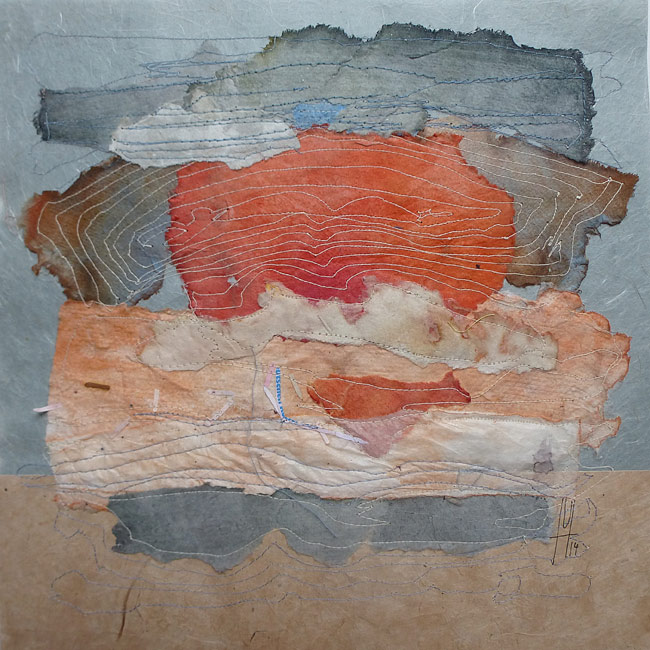 Collage, handgeschöpftes Papier, gefärbt, genäht
