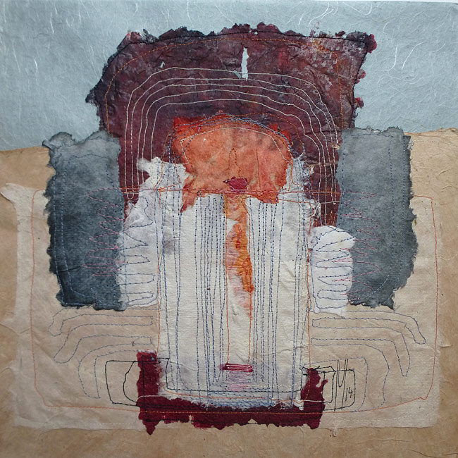 Collage, handgeschöpftes Papier, gefärbt, genäht
