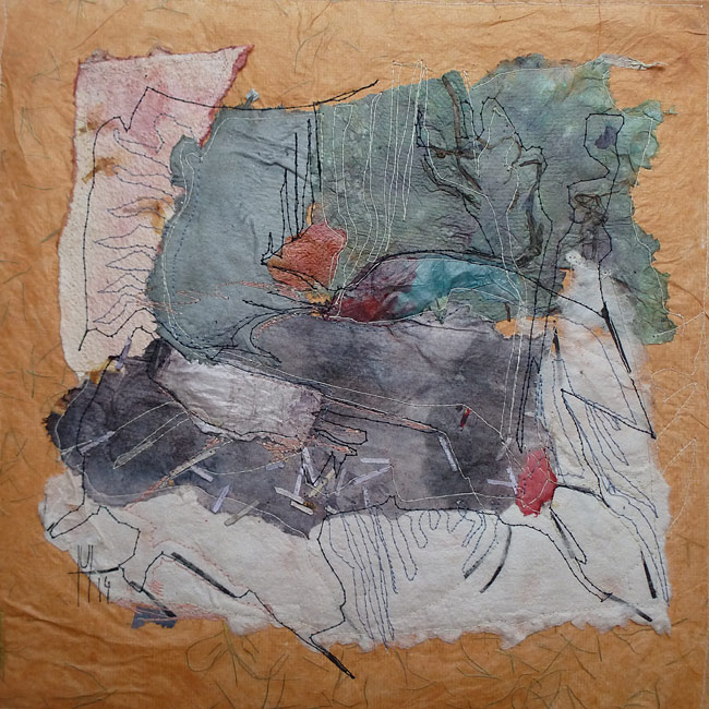 Collage, handgeschöpftes Papier, gefärbt, genäht