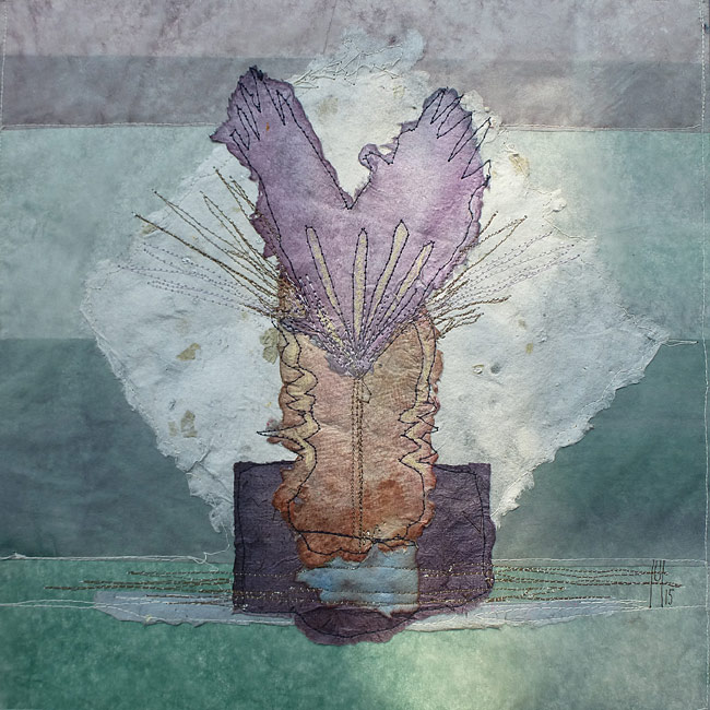 Collage, handgeschöpftes Papier, gefärbt, genäht