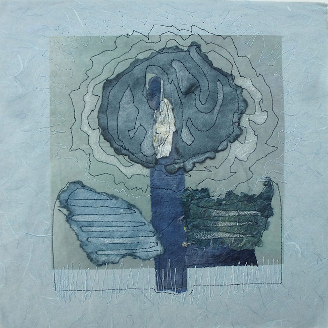 Collage, handgeschöpftes Papier, gefärbt, genäht
