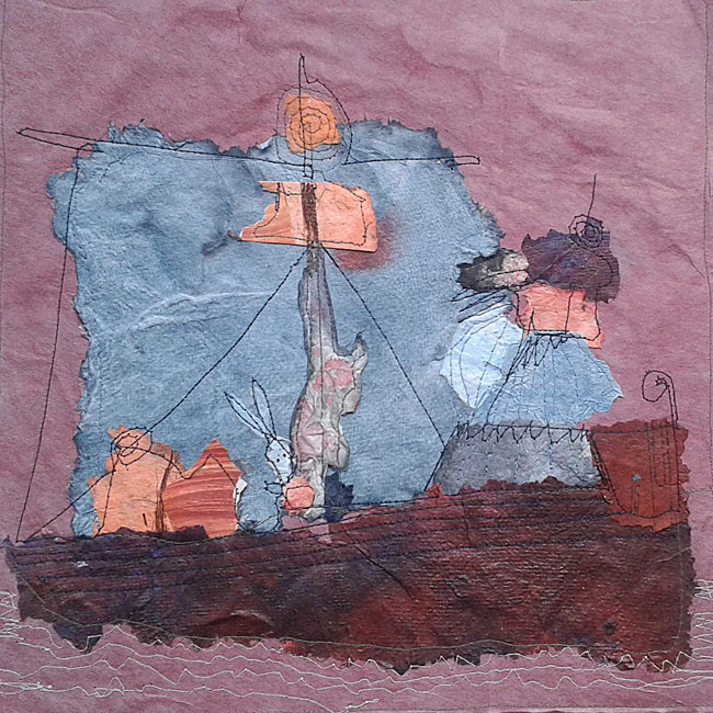 Collage, handgeschöpftes Papier, gefärbt, genäht