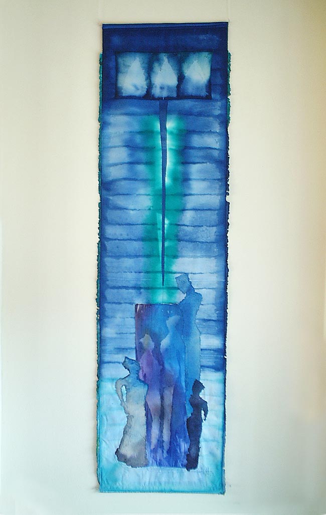 handgeschöpftes Papier auf Baumwolle, gefärbt / 60 x 214 cm