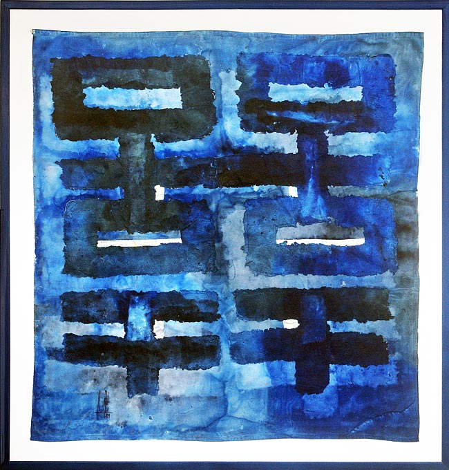 Doppeltes Glück steht Kopf / 2009 handgeschöpftes Papier auf Baumwolle, gefärbt, genäht / 106 x 100 cm