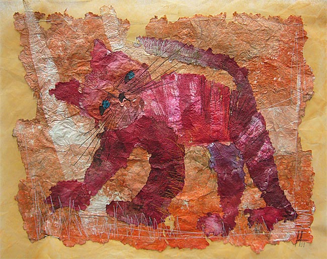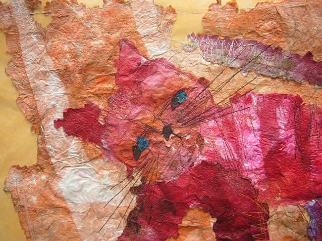 handgeschöpftes Papier auf Japanpapier, gefärbt, genäht / 67 x 53 cm