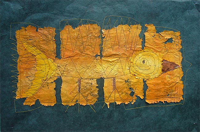 handgeschöpftes Papier auf Japanpapier, gefärbt, genäht / 67 x 51 cm