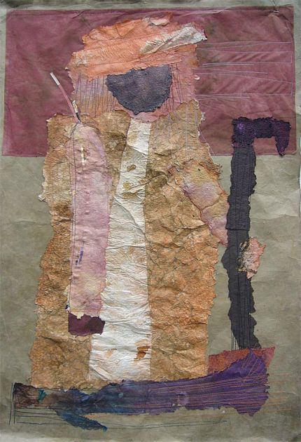 handgeschöpftes Papier auf Japanpapier, gefärbt, genäht / 52 x 78 cm