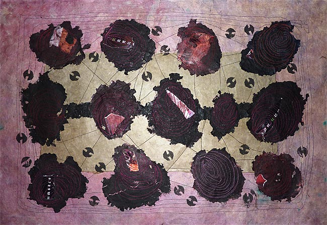handgeschöpftes Papier auf Japanpapier, gefärbt, genäht / 79 x 52 cm