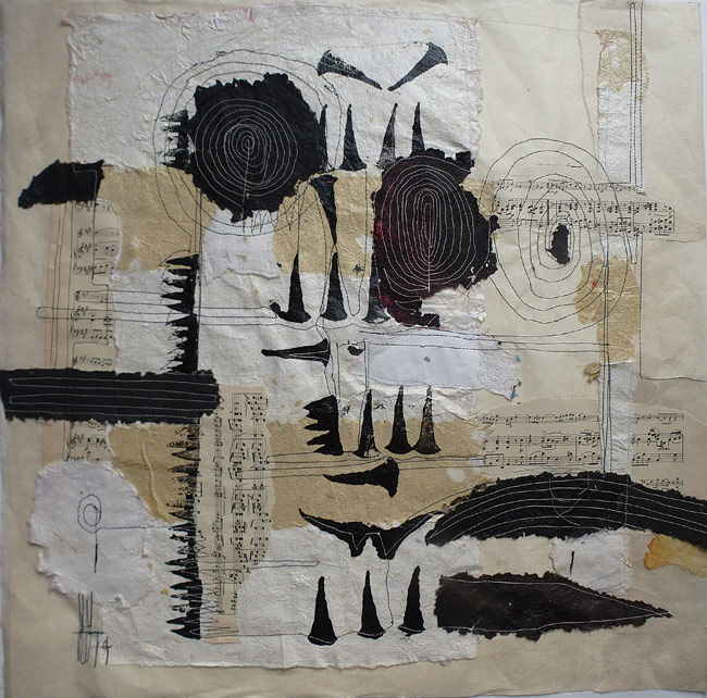 Die Macht der Musik / 2014handgeschöpftes Papier auf Japanpapier, gefärbt, genäht / 60 x 60 cm / verkauft
