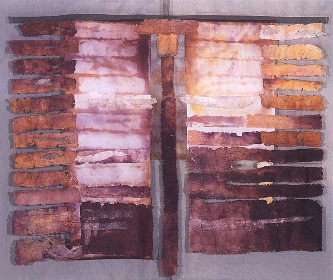 handgeschöpftes Papier auf Gaze und Baumwolle, gefärbt, genäht / 200 x 180 cm