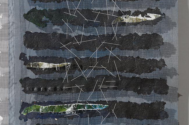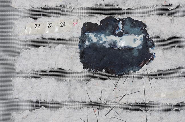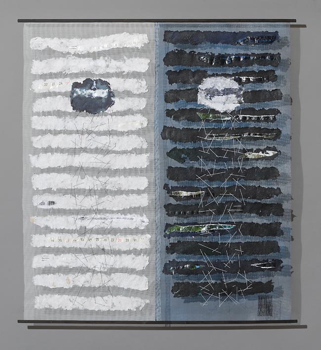 handgeschöpftes Papier auf Gaze, gestickt / 83 x 93 cm