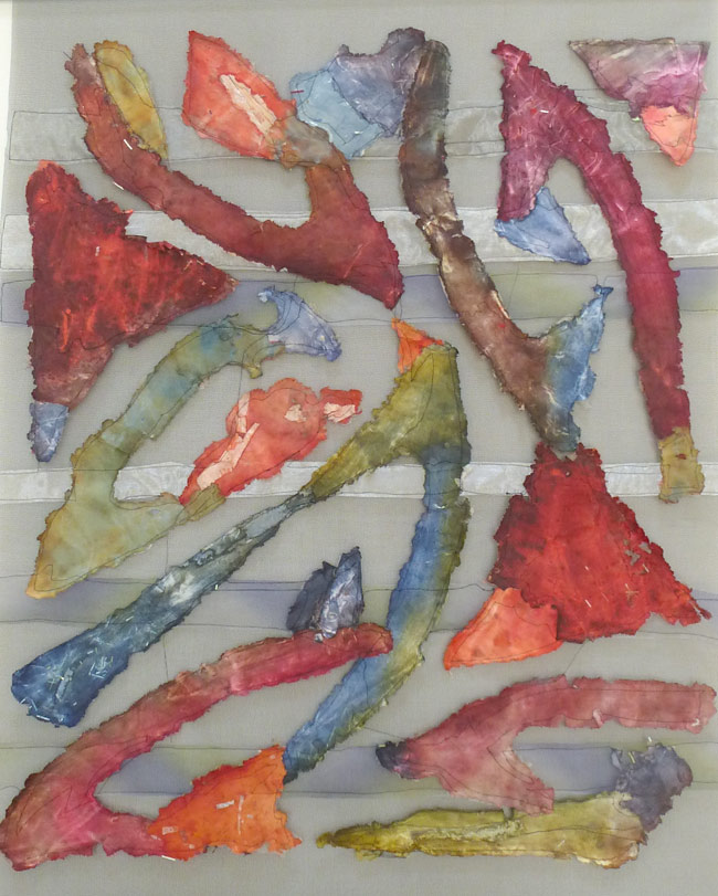 handgeschöpftes Papier, auf Gaze, gefärbt, genäht / 86 x 110 cm