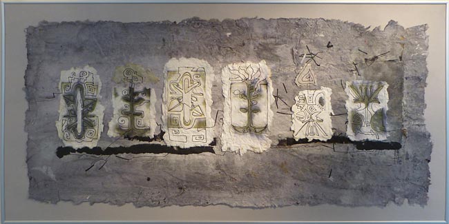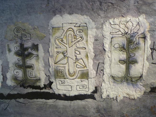 handgeschöpftes Papier, gezeichnet / 100 x 60 cm